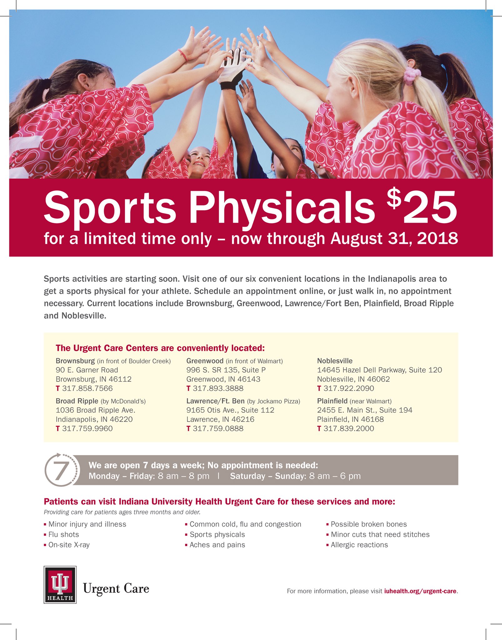 Cg Sports Network On Twitter Iu Health Is Offering Sports Physicals For 25 At The Iu Urgent Care In Greenwood Cg Through August 31 Download A Flyer At Https T Co F9j1odsej9 Https T Co Qssobq92o6